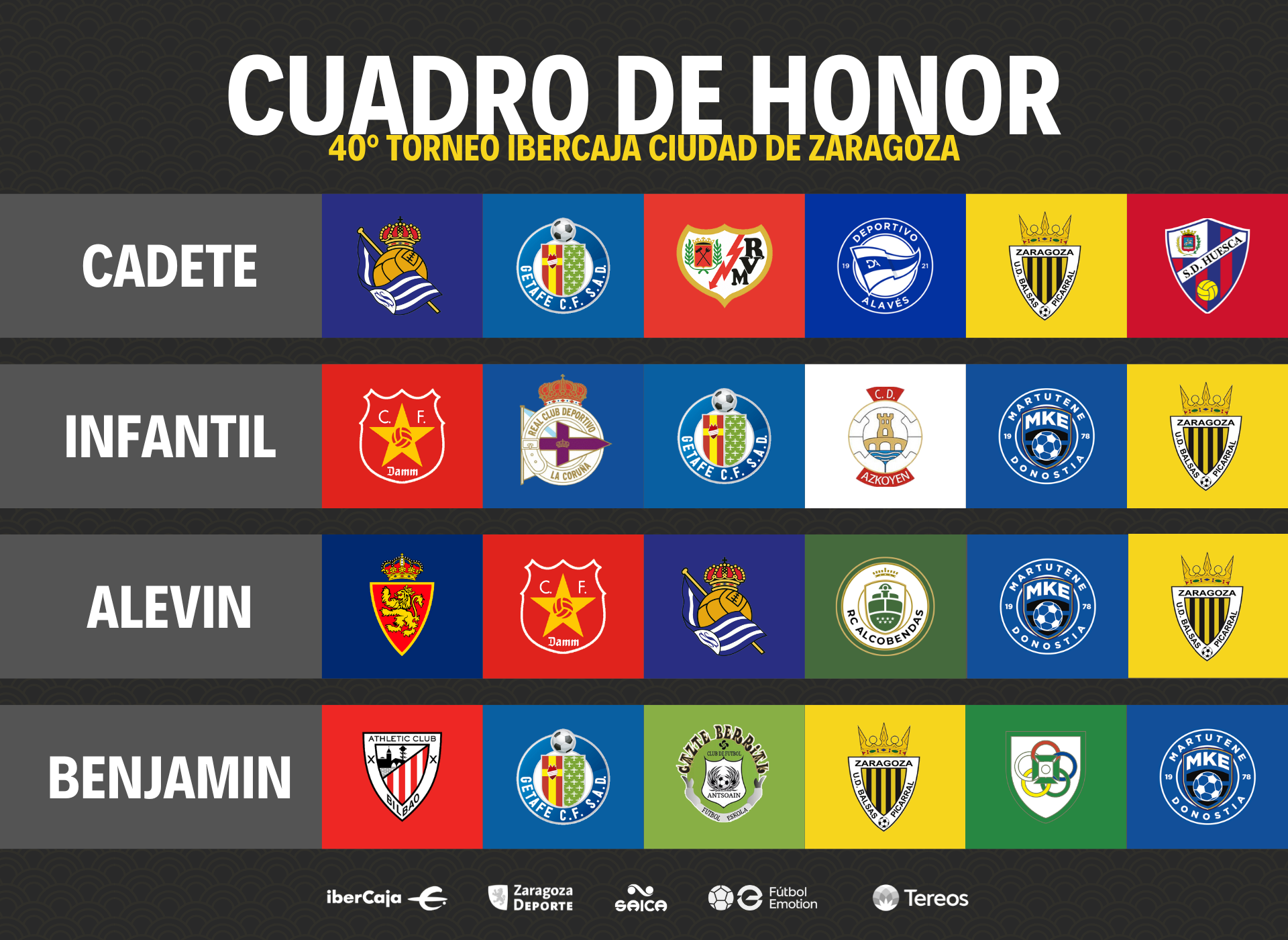 La inscripción y participación en el torneo de fútbol base “ibercaja ciudad de zaragoza” conlleva la total aceptación de este reglamento. Si se descubriera falsedad en la inscripción de algún jugador, el club por el que estuviera inscrito, será excluido automáticamente del torneo, corriendo por su cuenta todos los gastos por él ocasionados.